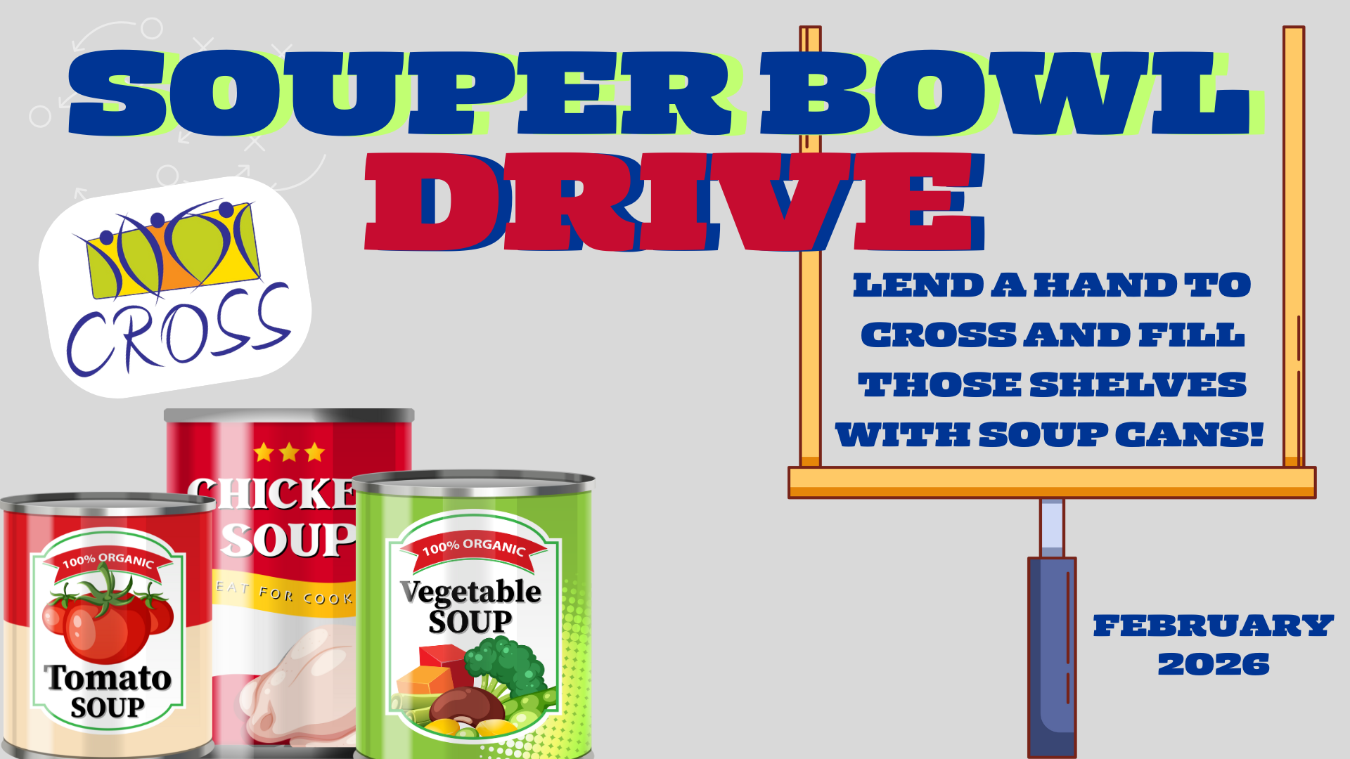 CROSS Services continues to need our support to help meet the food needs of our community. This month, let’s fill their shelves with soup cans! Please drop off your soup donations in the bins located at the north and south entrances. Thank you for your generosity and for making a difference in the lives of others.