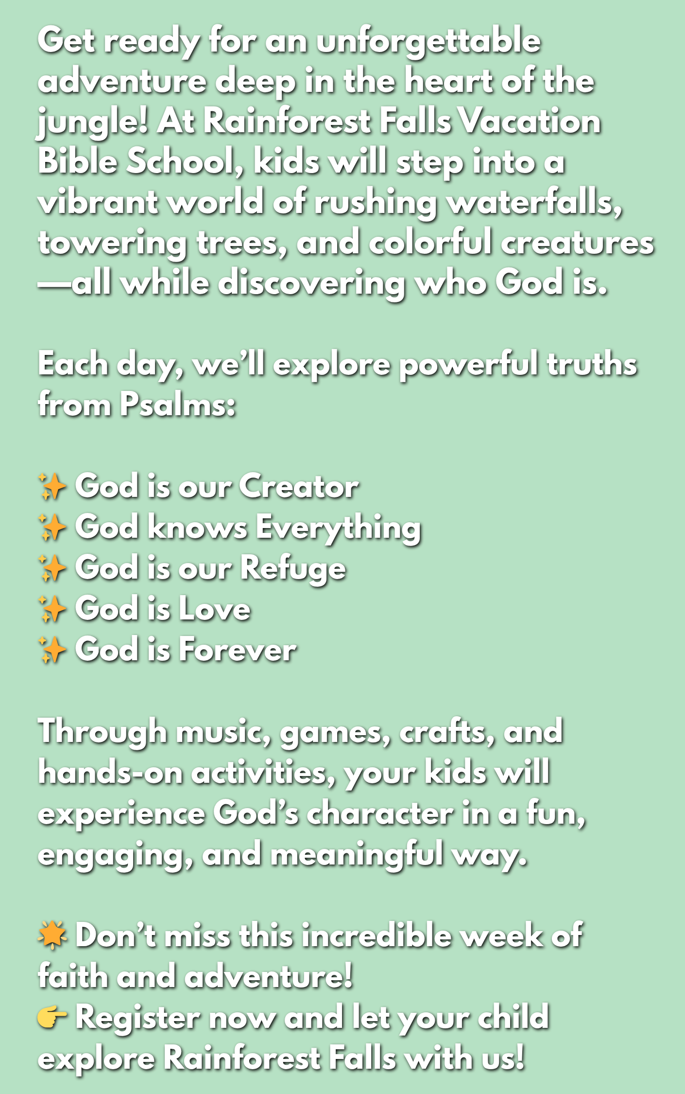 UNTIL RAINFOREST FALLS VBS!!!